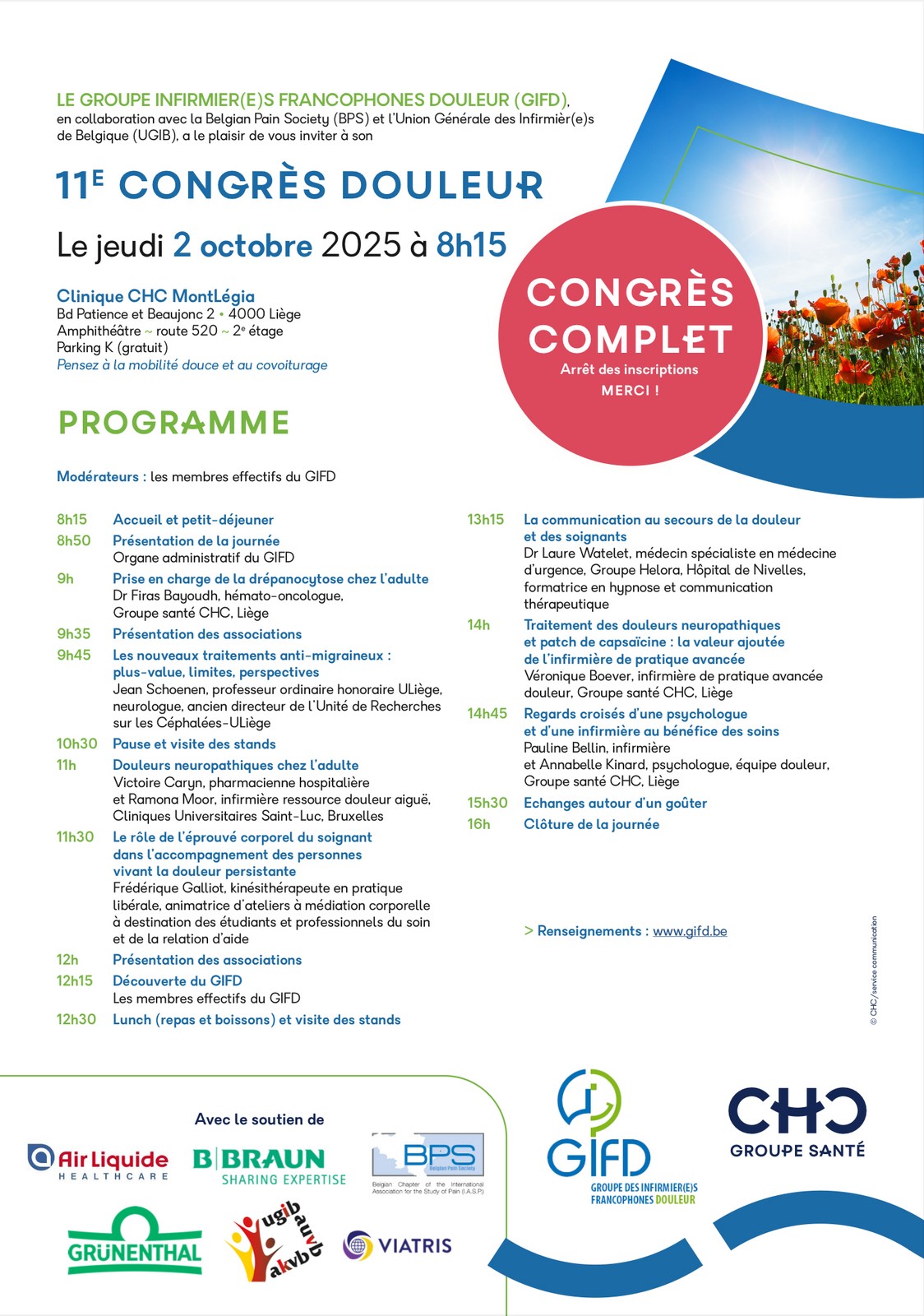Groupe Infirmier(e)s Francophone Douleur Info: secretariat@gifd.be